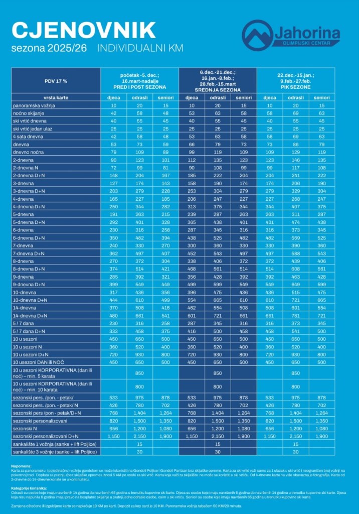 Zimska sezona nam stiže, a sa njom i sjajne vijesti za sve ljubitelje snijega! Jahorina, naša olimpijska ljepotica, spremila je povoljnije cijene ski karata i fleksibilnije modele kako bi skijanje bilo dostupnije i zabavnije nego ikad.